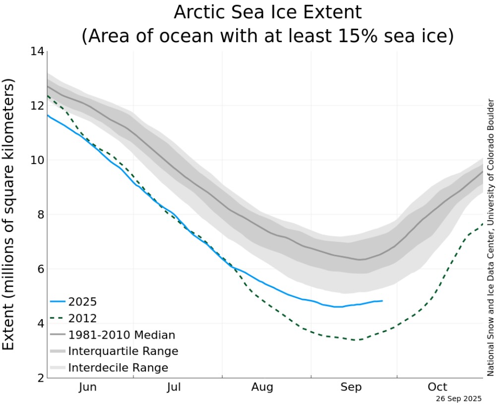 According to the United States National Snow and Ice Information Facility (NSIDC) at the College of Colorado Rock, the Arctic sea ice thaw this year has actually long reached its nadir, being up to 4 602 million square kilometers on September 10 th: